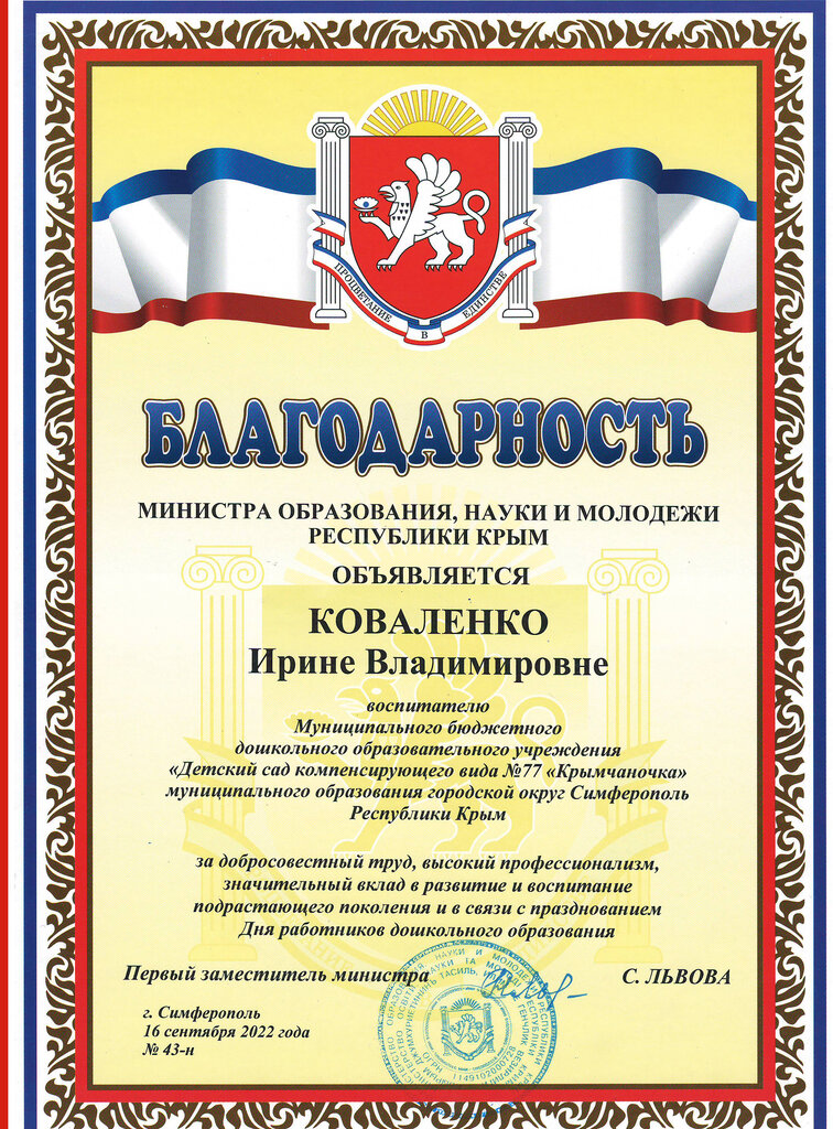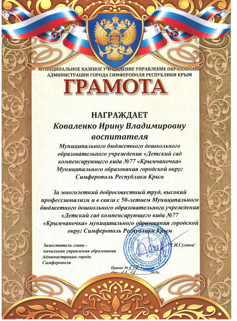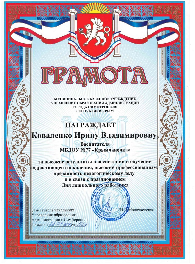 Место работы: | МБДОУ №77 «Крымчаночка» |