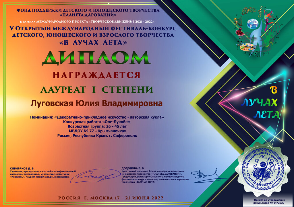 Место работы: | МБДОУ №77 «Крымчаночка» |