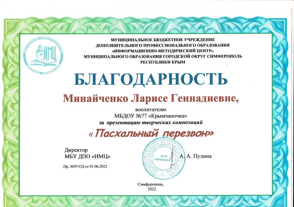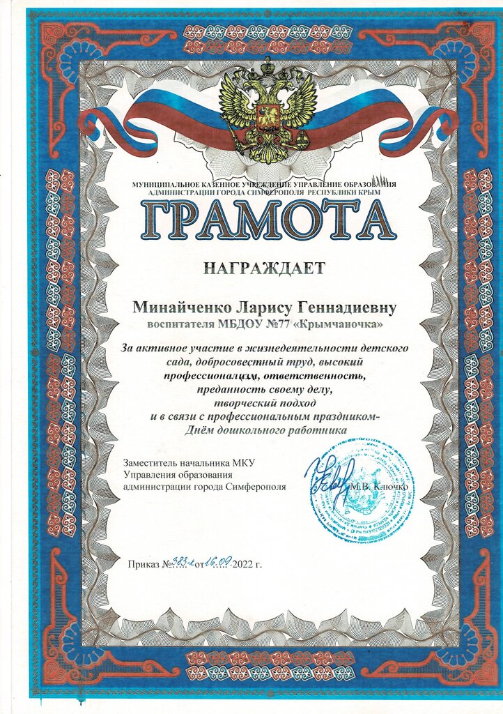 Место работы: | МБДОУ №77 «Крымчаночка» |
