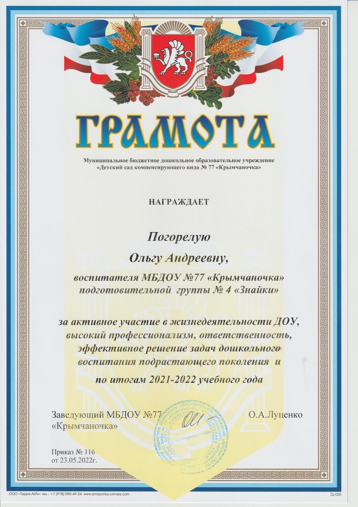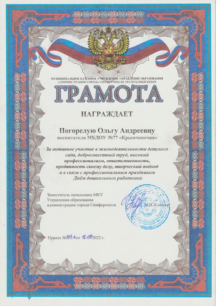 Место работы: | МБДОУ №77 «Крымчаночка» |