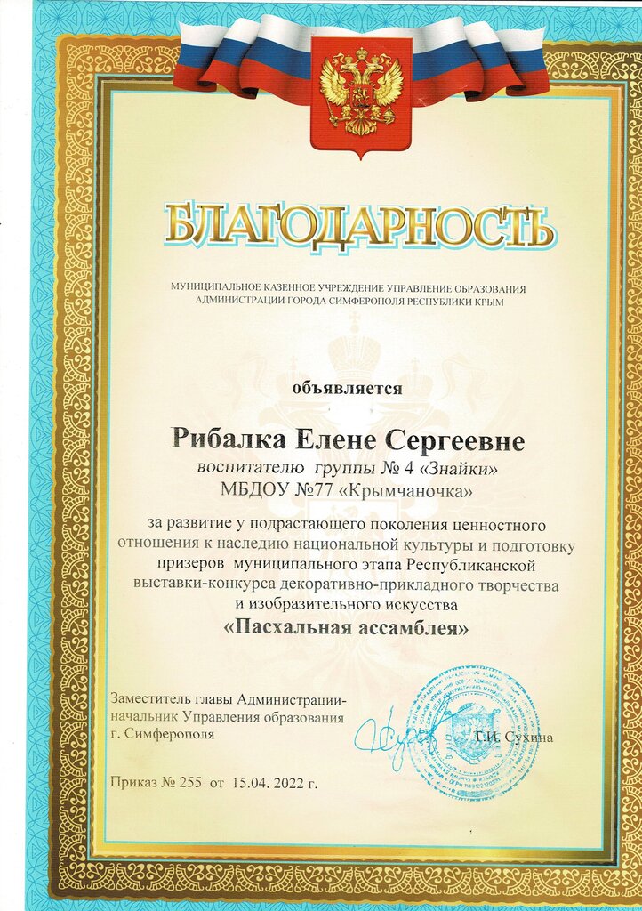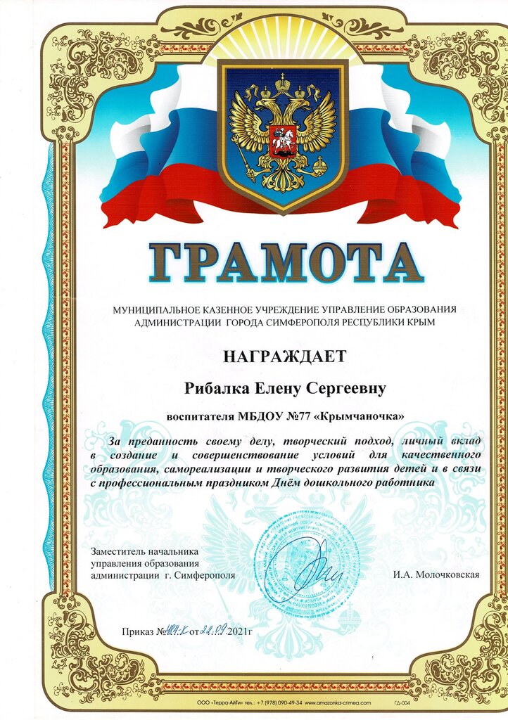 Место работы: | МБДОУ №77 «Крымчаночка» |