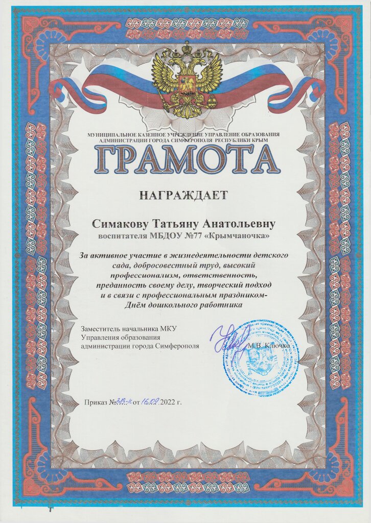 Место работы: | МБДОУ №77 «Крымчаночка» |
